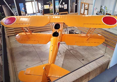 機体の色から「赤とんぼ」と呼ばれていた練習機。戦況に鑑み特攻にも出撃、機体は濃緑色に塗り換えられたという。この車輪の塗装もそうなっている。