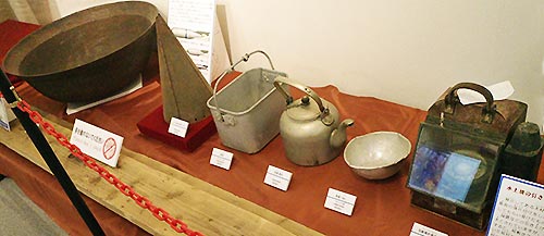 . 志摩歴史資料館 福岡/糸島 ▼企画展▼ 糸島地域の戦争関連のエピソードを展示。 ▲予科練関連資料 ▲海軍士官第一種軍装、飛行眼鏡、海軍の医療箱 ▲零式水上偵察機の機体の一部。戦後、チリトリとして使用されていたそうで、裏面には 銘板が残っているらしい。 R8.1.12 . ●写真と情報は柳生八兵衛さんから● 志摩歴史資料館にあった「瑞雲のパーツ」は . ▲零式水上偵察機の機体パネル これは所蔵者が敗戦直後の基地解体作業の対価として受け取ったものだとか。 海軍 玄界航空基地 関連→船越湾・玄界基地 R6.8.15