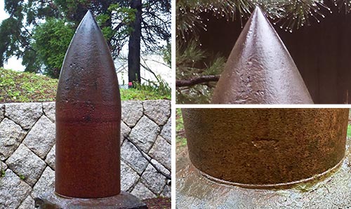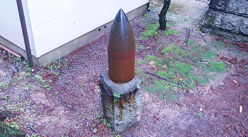 . 田の首八幡宮 山口/下関 . 田の首(たのくび)八幡宮 村社 御祭神は 境内に砲弾が置かれている。 ▲砲弾 径・約272ミリ、長:約750ミリ 詳細不明 台石に刻字 近くに田ノ首砲台があり、加式鋼製二八口径二十七糎加農が 4門据えられていたので、その関連かもしれない。 同じく下関の宇部八幡宮にも同じ砲弾がある。 下関要塞・田ノ首砲台 ▲日清日露戦役紀念碑 明治四十一年九月建 令和7.10.7