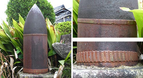 ▲砲弾 径:約279ミリ、長:約780ミリ 二十八糎榴弾砲 砲弾 弾種不明